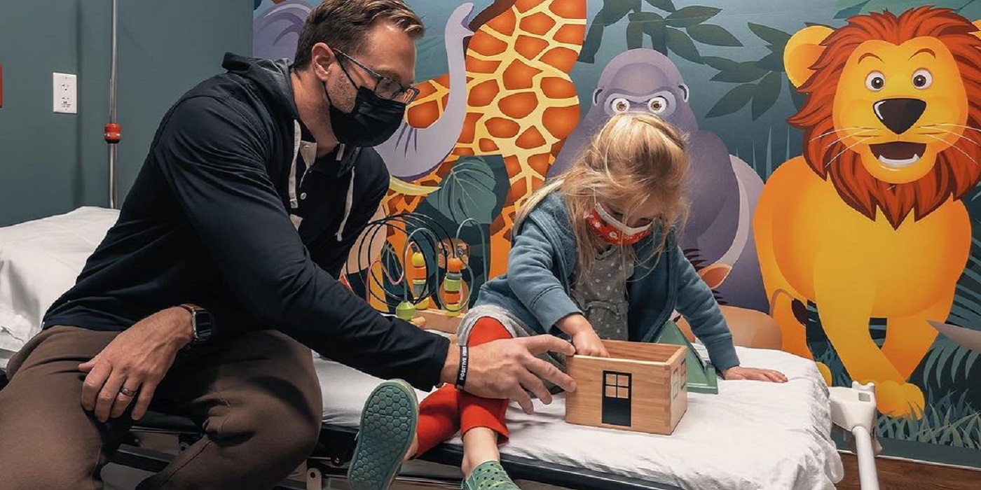 Adam Busby publicó varias fotos y videos de la hija en cuestión, Riley, mientras esperaba atención en la sala de espera de la clínica.